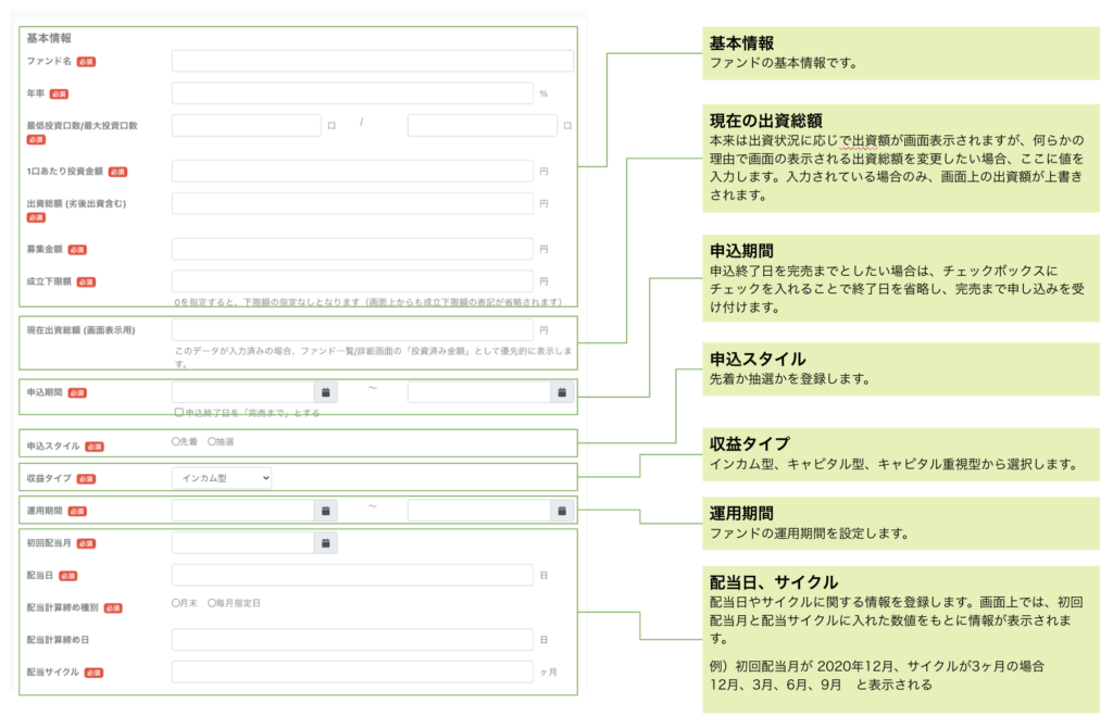 ファンドの登録・編集画面