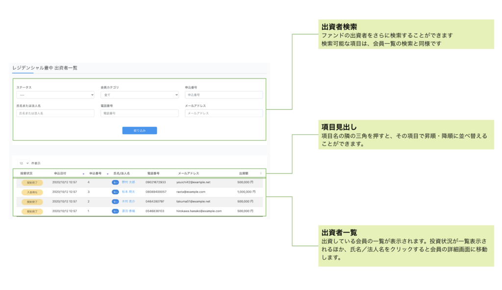 ファンド出資者一覧画面