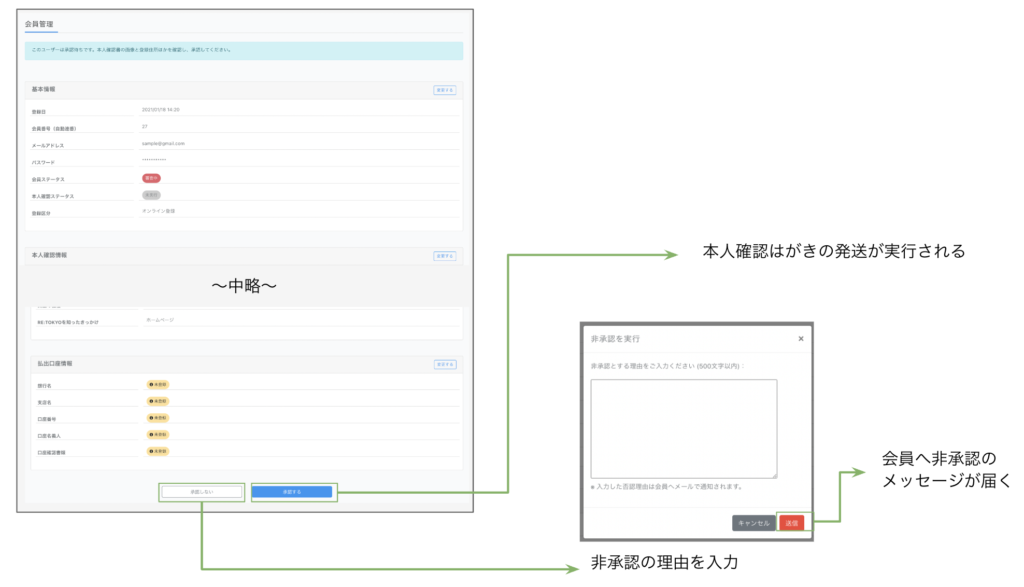 承認しない場合は、その理由を入力してください。理由が会員に伝達されます。